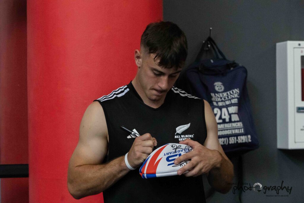 On the 6th December 2024 a dreamer had his wish granted ~ Meeting the all Blacks. The 7s were in Cape Town and a meet and greet was done at the hotel and the weather was not in our favour and the team had an indoor training session at the Sports Science Centre. Tickets for the game as well as gear was given to our Dreamer – smiles for days!